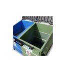 - Equipped with plastic lids with a steel reinforcement frame support the closed lid while dumping another compartment