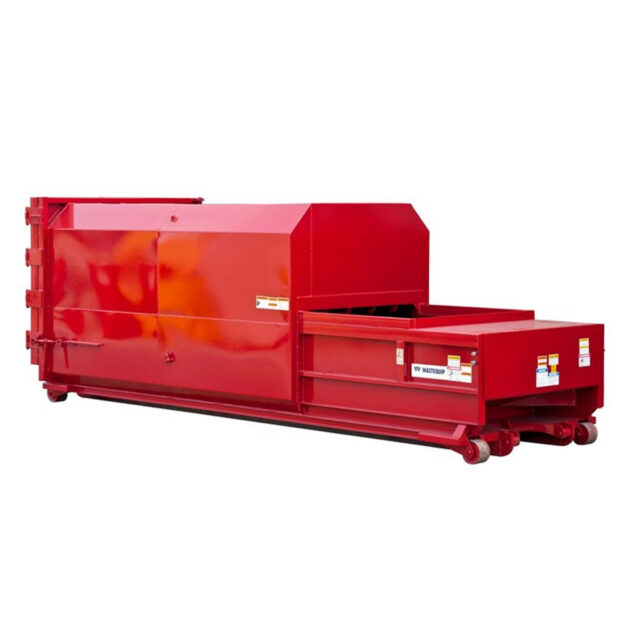 Self-contained compactors combine the waste container and compactor into a single unit, making them best for handling high volumes of wet waste or waste containing liquid.